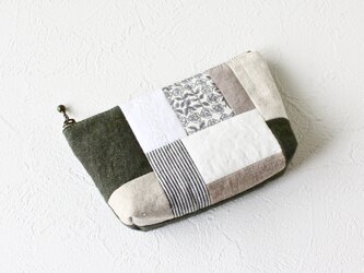 布合わせ|コットン・リネンのショルダーバッグ|茶×白×ベージュ¥8,000 -