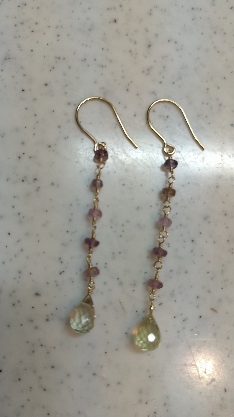 A様オーダー品 ひとつぶグリーンアメジスト 14kgf ラインイヤリング