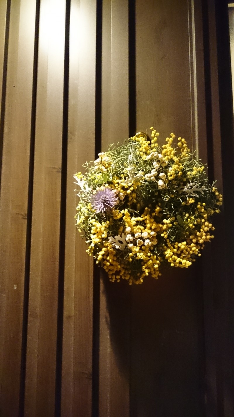 この度は素敵なリースをありがとうございました。早速玄関に飾りました!ふわふわで、自然のお花たちが優しい雰囲気です。経年変化も楽しみたいと思います。
