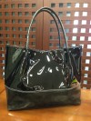 A4ファイルがすっぽり入る ショルダートートバッグ 超軽量 PUエナメル PUレザーコンビ ブラック