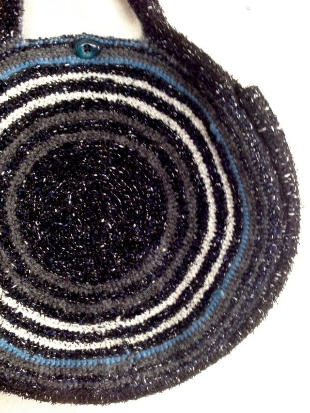 水色のミックス糸とNAVYのミックス糸のグルグルBAG