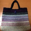 色んな糸でざっくり編んだボーダーショルダーバッグ/リボンヤーンがかわいいです♡