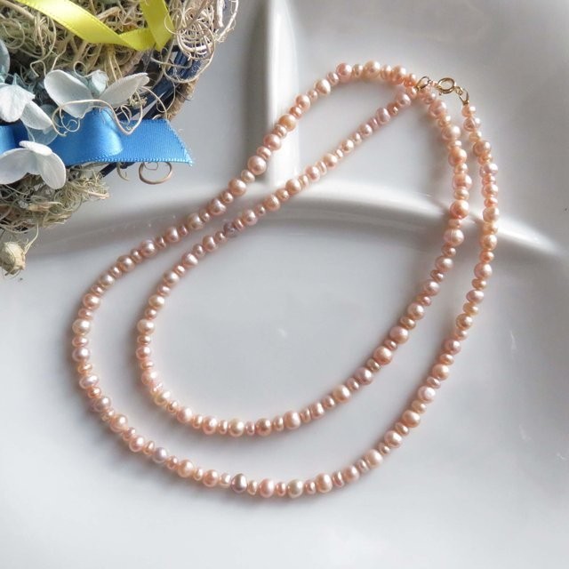 サーモンピンクの淡水パール ロングネックレス MN0318-001