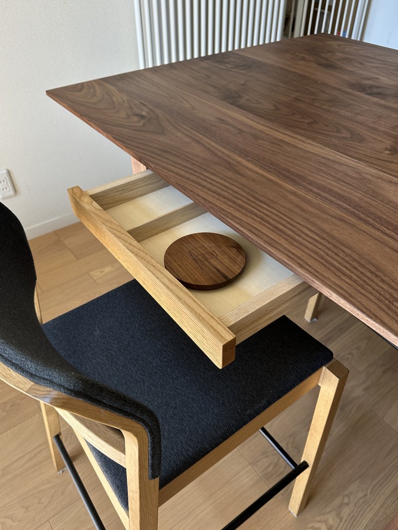 大変素晴らしい作品をありがとうございます。最近、カウンター風ダイニングテーブルをオーダーして使っていましたが引き出しがあると便利かと思い、色々と探していましたが満足のいく作品にようやく出会えました。