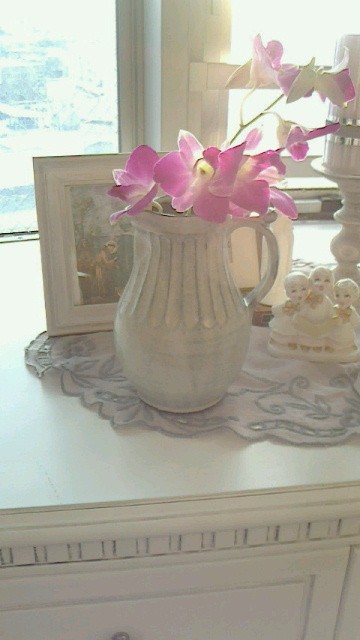 貼付け模様の白いピッチャー(花瓶)/オーダーメイド受付可