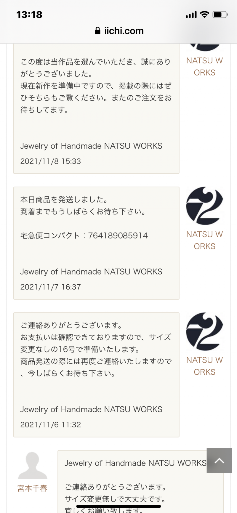 到着致しましたが、サイズが違ってました。16号で注文したのに13.5号。ちなみに不安になり前回のリングも計ったところ16号で頼んだのに14.5号でした。ガッカリしました、とても残念です。