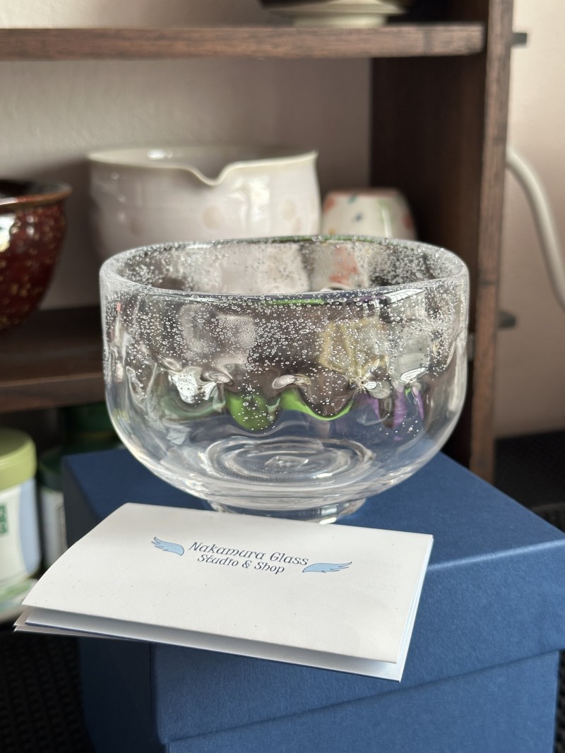 これまでに手にした中で、最も美しいガラスの抹茶碗です。細部まで丁寧に作られていて、全てが完璧です。お店の対応も素晴らしく、発送状況を逐一丁寧に知らせてくださいました。この抹茶碗をこちらのお店で購入できたことに本当に感動しています。美しさだけでなく、とても価値のある一品です。心からおすすめします。