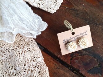 布花イヤリング オフホワイトのオーガンジーデージーとコットンパール¥2,200 -