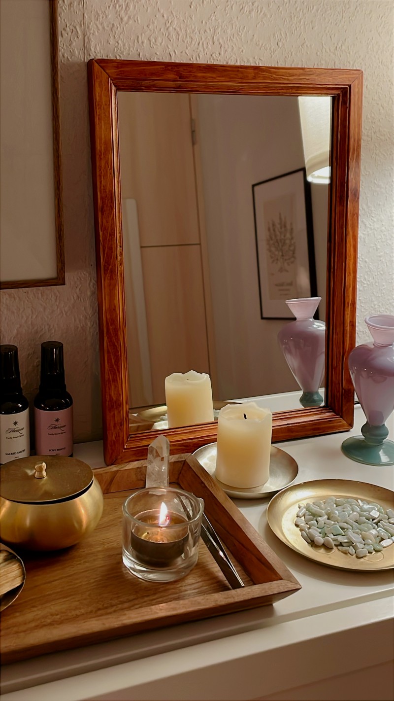 テーブルの上に置いてメイクやヘアブローが快適にできそうですし、普段もディスプレイされているだけで部屋の雰囲気がいい感じになったみたいです。