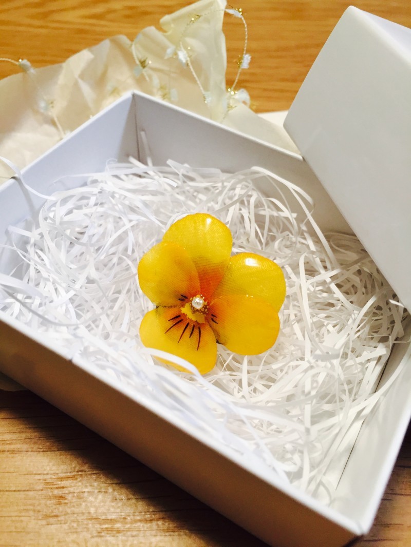 想像以上に素敵な作品で感激しています!花びらもしっかりしていて艶やかで、身に付けていない時も飾っていたくなります。