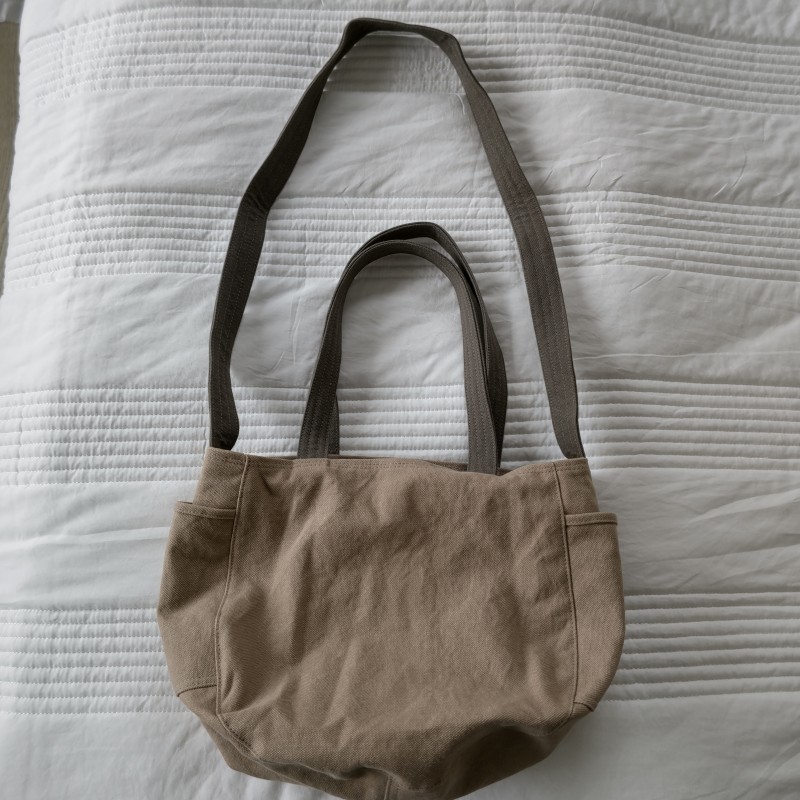 お品物届きました。思ったより少し薄めのお色で、形がとても可愛いです。自分に使いやすい様にオプションで斜め掛け紐(有料)を付けて、肩掛け紐を+5cm(無料)していただきました。クタクタ生地なのでとても使いやすそうです。大変気に入りました。ありがとうございました。また別のお色のも欲しくなりました。