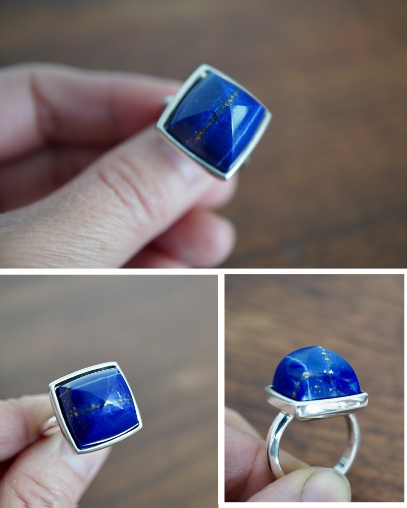 楽しみにしていたリング、受け取りました。原石を研磨するところからの制作で、内包されているハウライトやバイライトのラインの出方まで確認していただき、まさにonly oneのステキなラピスラズリの作品に仕上がっておりました。ありがとうございました!