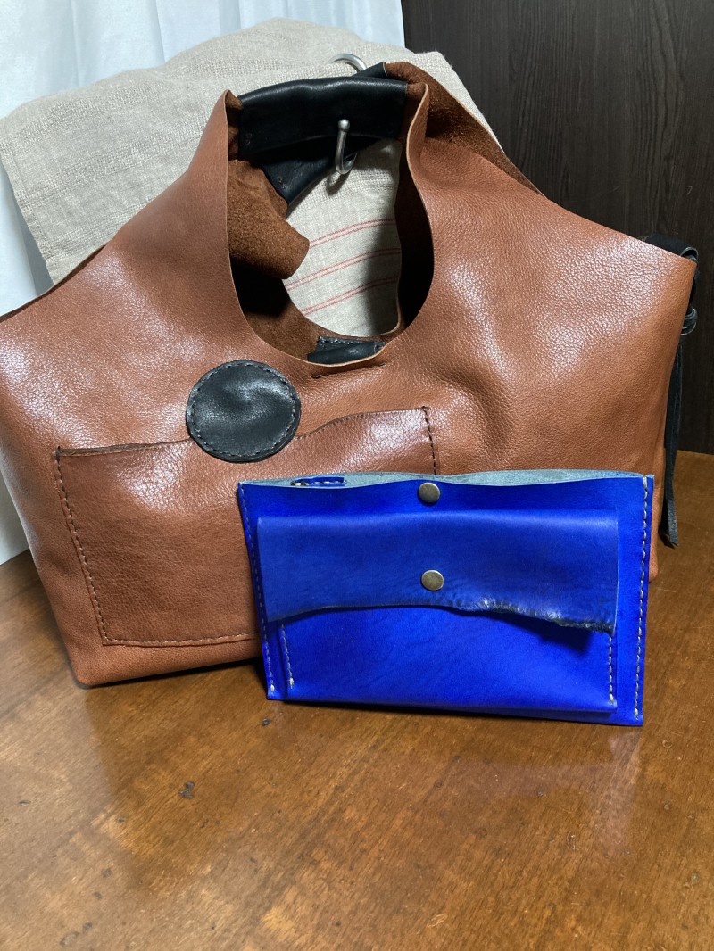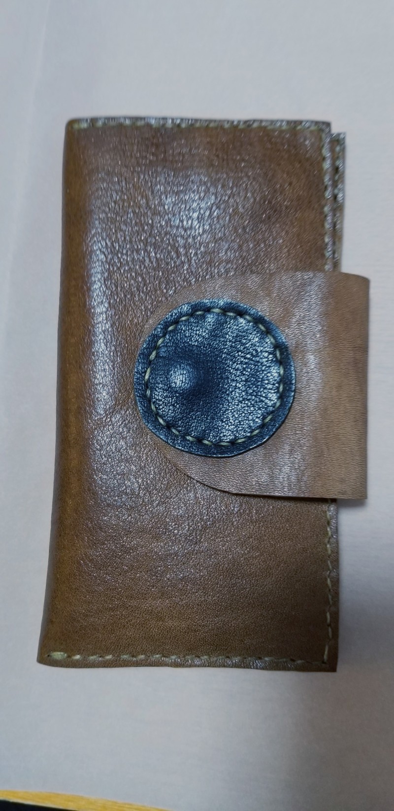 レギュラーサイズより少し大きめの、通帳も入る財布を作って頂きました。大変お世話になりました。黒と鮮やかなブルーがとても気に入っています。有り難うございました。