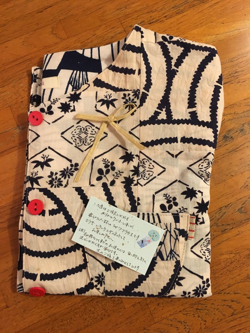 着物に縁のないこれまででしたが、普段和布の服を着てみようと、この夏から着物リメイク服を買いはじめました。届いた作品は色味が絶妙で、大変気に入りました。エプロンというより外出時にも着用しようと思います。有り難うございました。