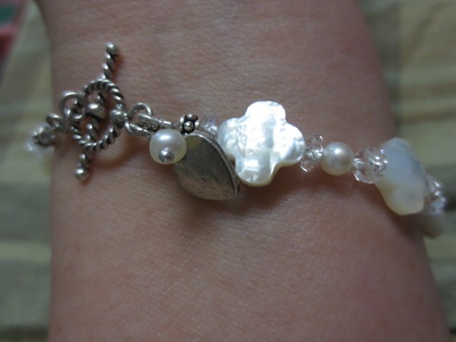 シェルのお花と水晶・パールのブレスレット