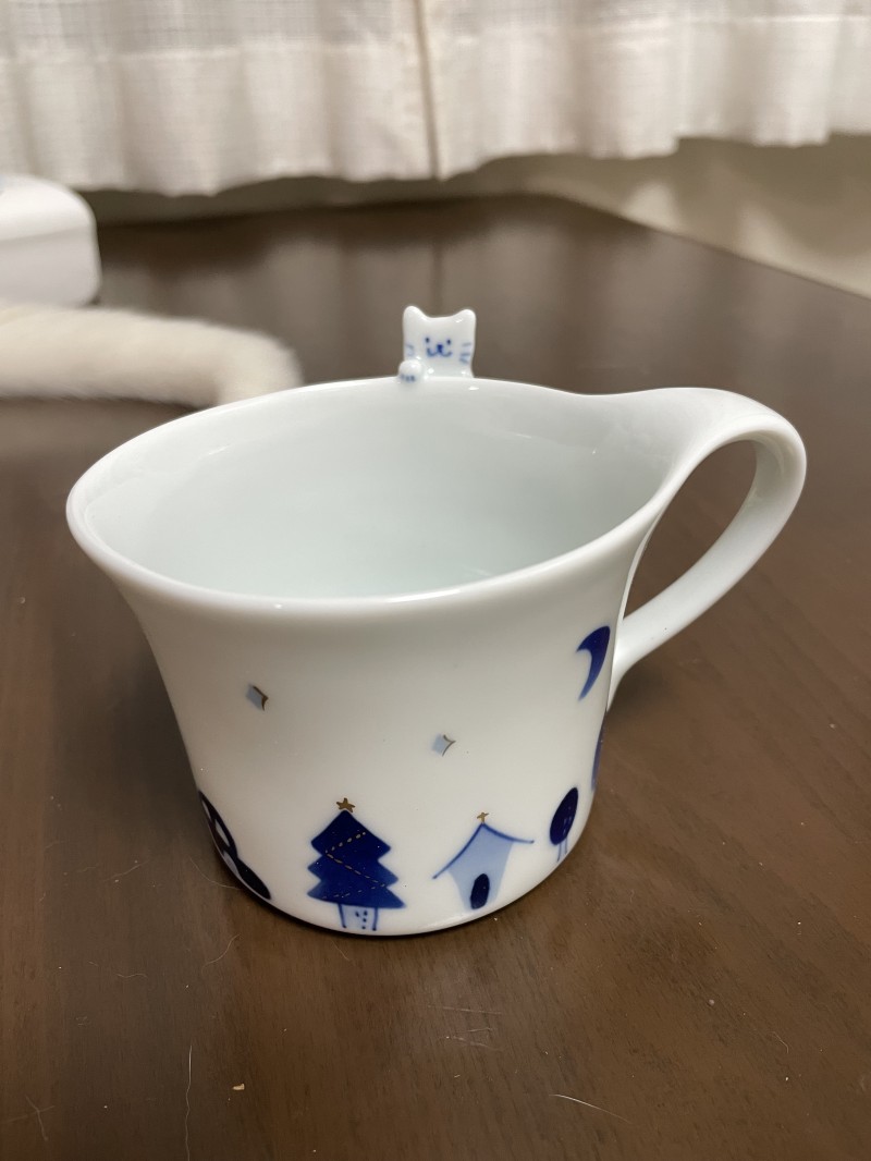 ネコがのぞくマグカップ既に2つ手元にありますが今回クリスマスバージョンが出たので購入しました。チラッと覗いてるネコちゃんが可愛いです。