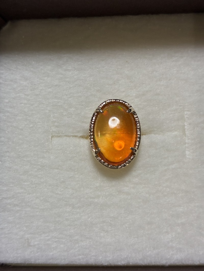 まろやかな色、チラッと見える虹色の光がとても美しいリングです。久々に手と爪のお手入れをして、楽しみたいと思います。ありがとうございました。