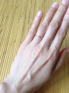 2つめのリング購入です。今回はぴったりだった前回より少し余裕をもってサイズを0.5大きくしてもらいました。サイズを0.5刻みで作っていただけるのがとても良いです。大切にしたいと思います。かわいいリングをありがとうございました。