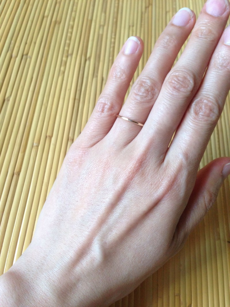 k18の深い金色と細身のリングがマッチしていてとてもいい感じです!スキンジュエリーとして毎日着けられます!