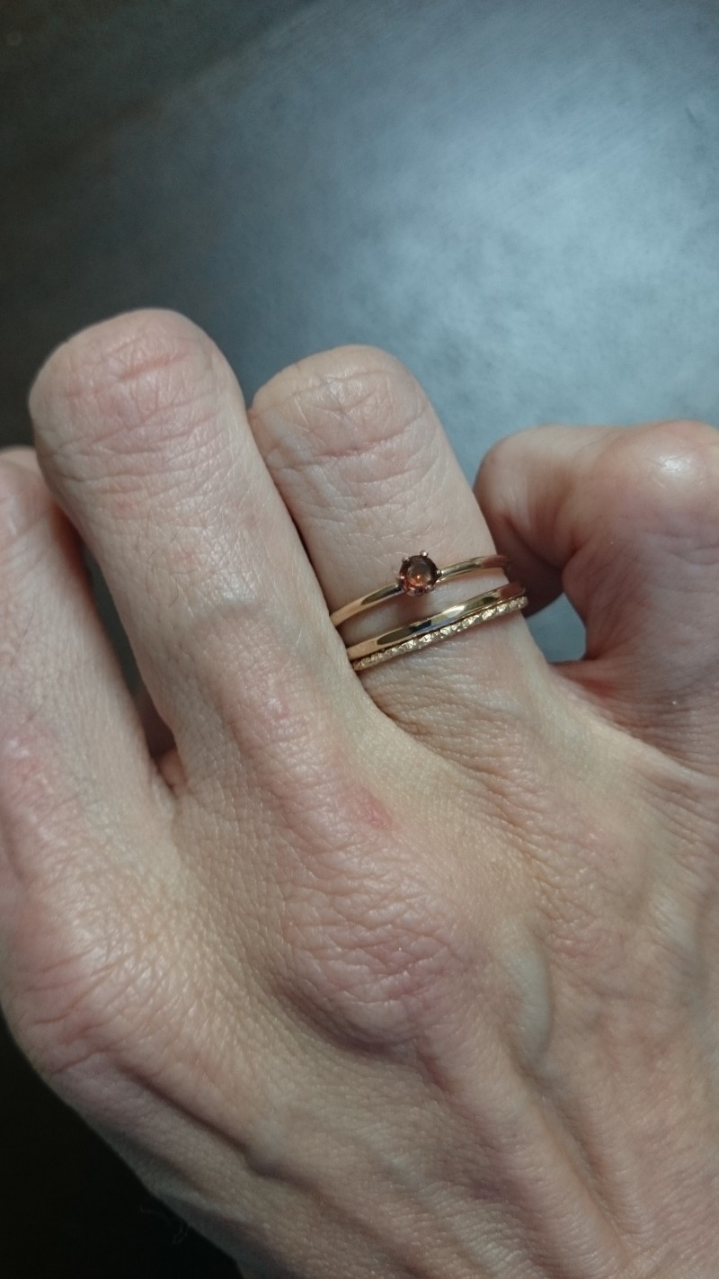 今朝、ゆびわを受け取りました。そのままはめて仕事に出かけましたが、一日中手ばかり眺めていました…思った以上に指になじみ、もう外したくないほどです。ありがとうございました!