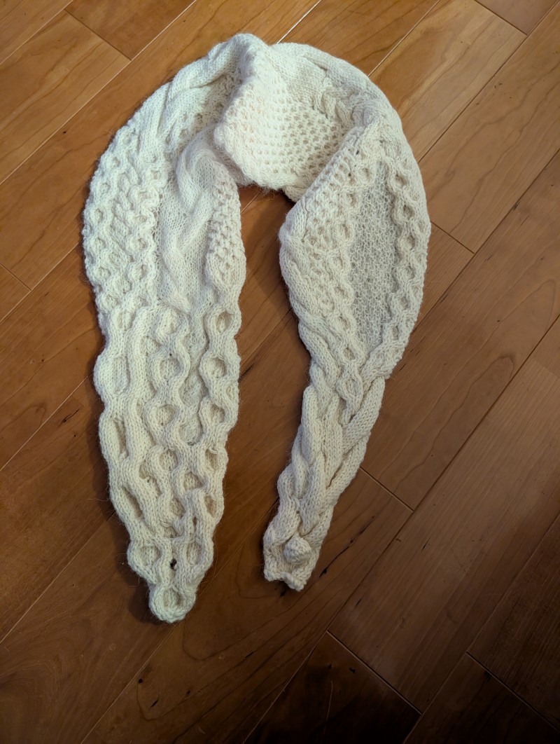 67.スヌードになるなわ編みショール〈2種糸/オフホワイト〉