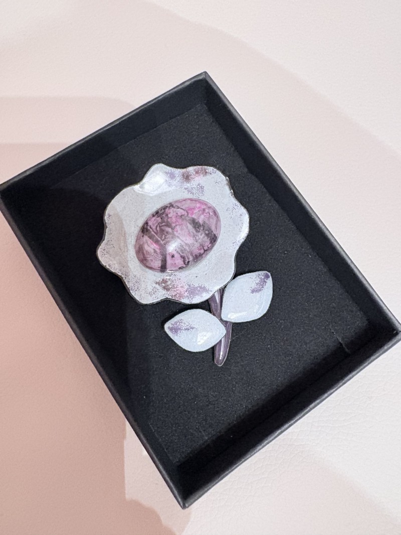 様々な石の模様が生かされサークルにデザインされたブローチ