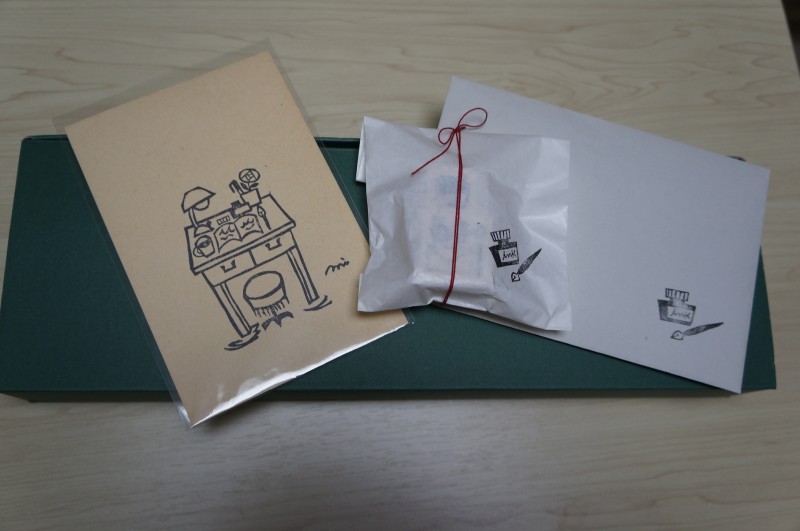 すぐに発送していただきありがとうございました。しかもこの可愛いパッケージ♡ 袋から出すのももったいなくてしばらく眺めていました。実はすごくほしかった机の図柄をおまけにいただきうれしかったです。早速サイトにもとびました。なんだか、この午後がすごく豊かになった感じです。どんな色のインクにしようかと思案中です。