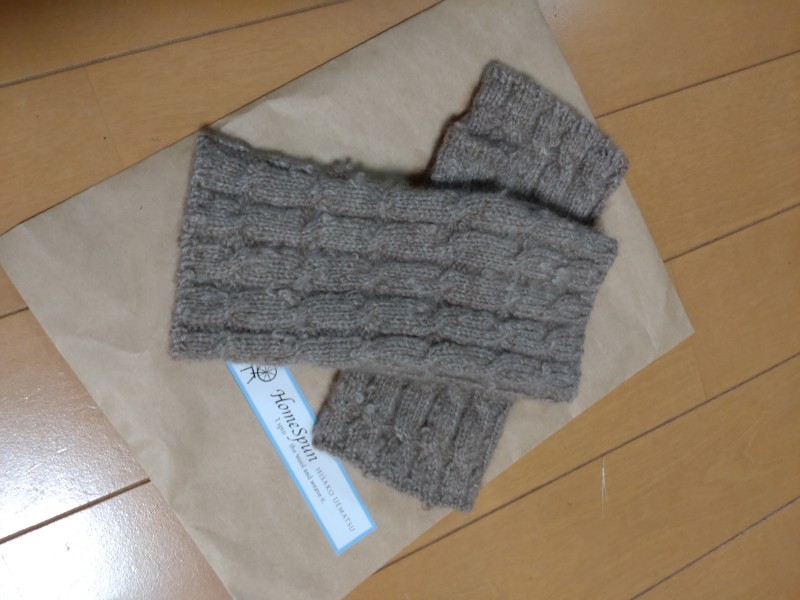 手紡ぎされたハンドウォーマー、色もきれいで、ポツポツの一つ一つに温かみを感じる作品です。きれいに編まれていて、購入できて良かったです。大事に使わせていただきます。