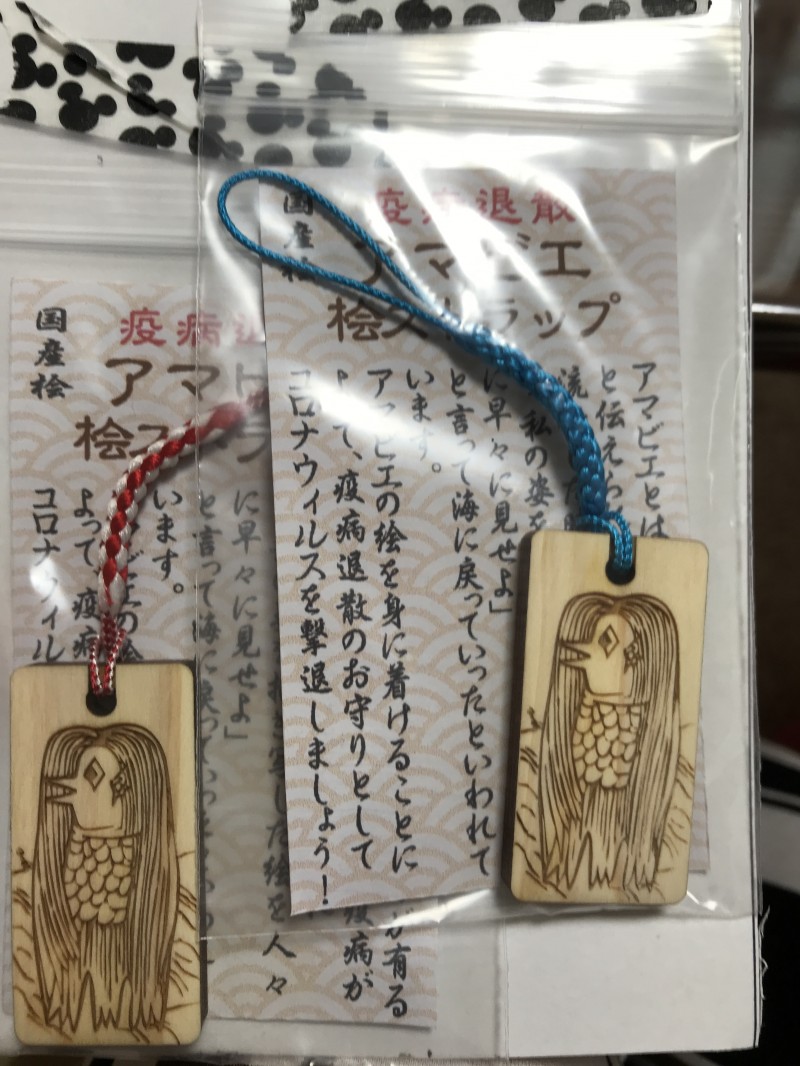 アマビエ様/疫病退散 国産ヒノキ 木札ストラップ