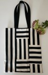【bigサイズ】白黒ボーダー パッチワーク*すっきりトートバッグ*太ストライプ 大容量 肩掛け