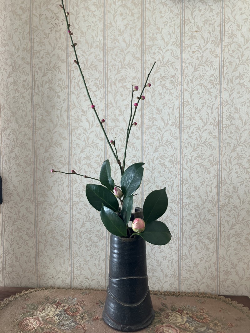 沢山の枝物や珍しい椿を入れて頂き、