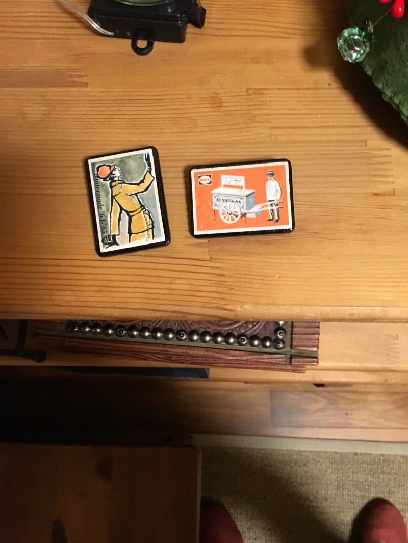 この切手のバッジを見つけたときは、とても興奮してしまいました。実物はもっと素敵でした!